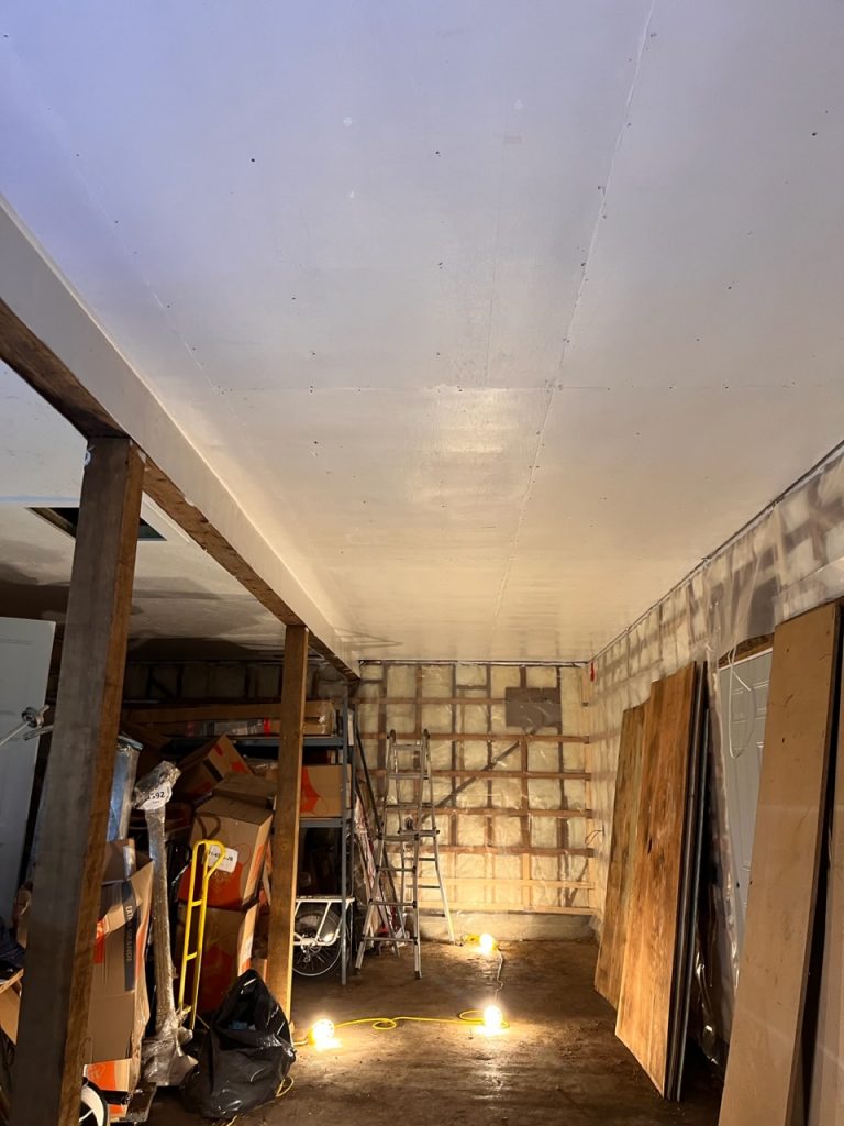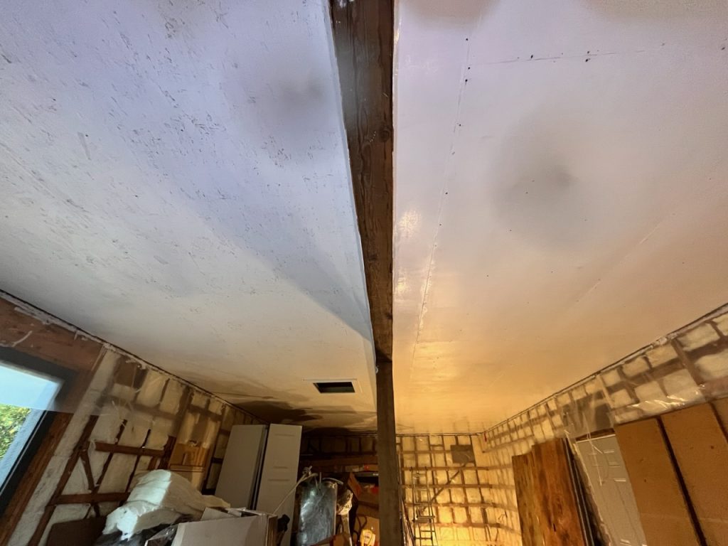 Heute habe ich Hilfe von Alice bekommen. Wir haben den Rest der Fugen mit Acryl gefüllt und dann die Decke gestrichen.