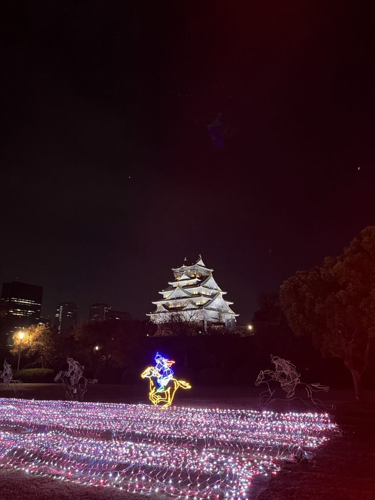 Mein Hostel hat sich angefühlt wie eine Monteschule. Nachmittags nen bissel rum laufen. Als es dunkel wurde sind wir dann zu dem Osaka Castle gefahren und haben uns die Lichtshow da angeschaut. Danach sind wir an in die Street food/Touristen Meile gefahren.