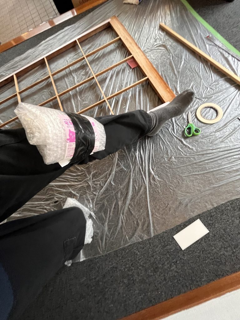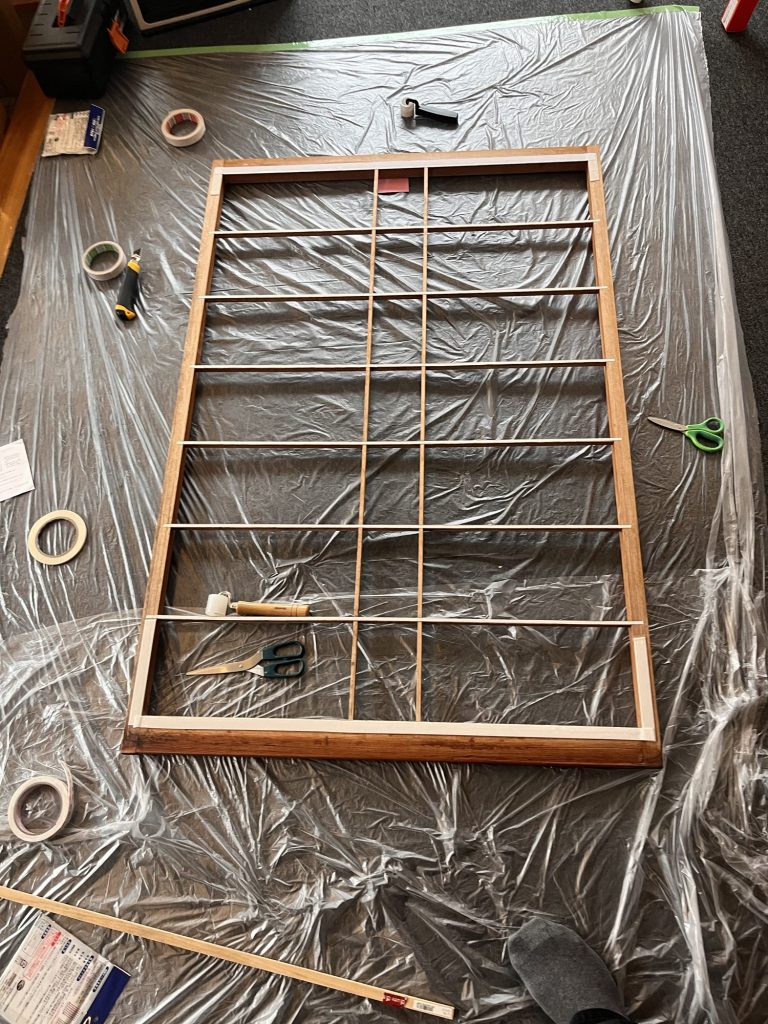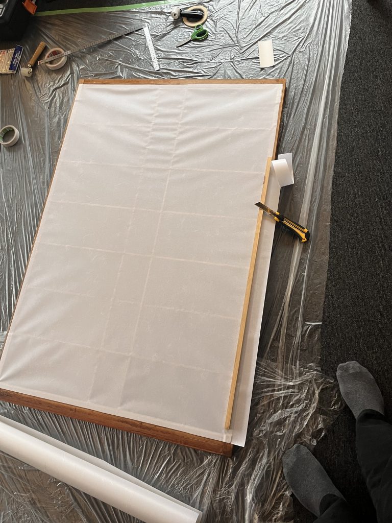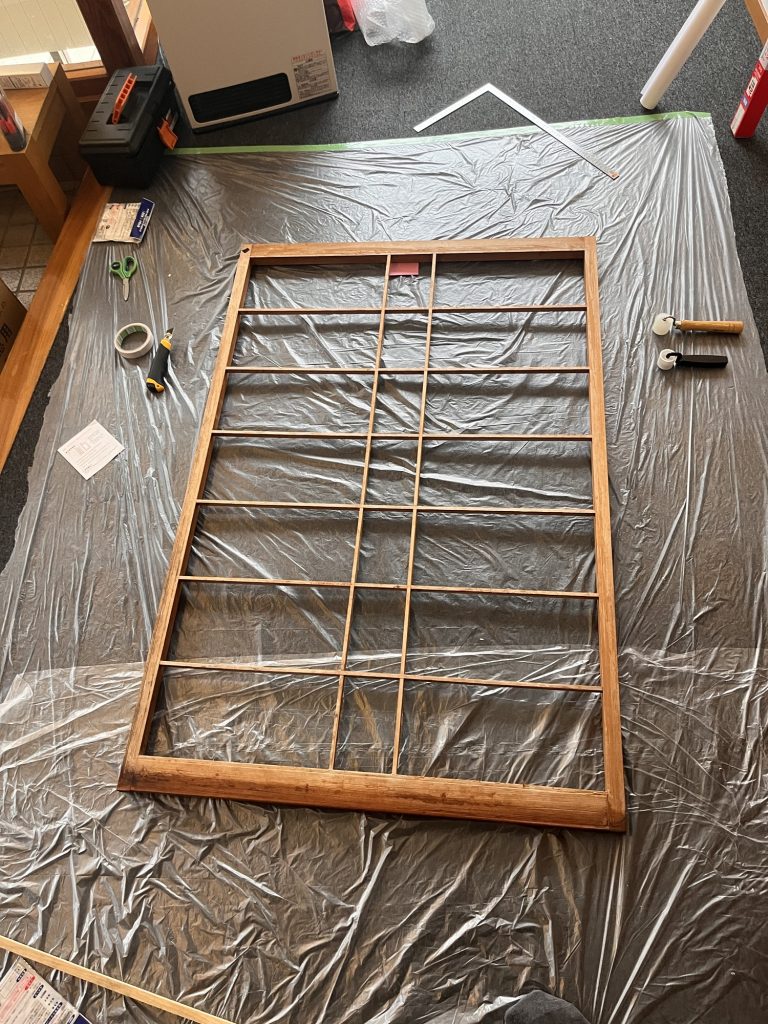 Heute habe ich das restliche Papier von den Fenstern gerissen und dann angefangen neues Papier auf die Fenster zu kleben. Mit doppelseitigen Klebeband.