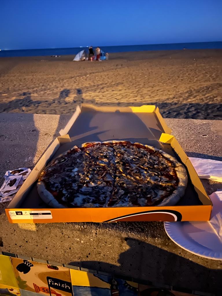 Ich habe gestern bis spät in die Nacht gebastelt. Deswegen bin ich heute erst spät aufgewacht. Curtiss ist morgens angekommen und wir haben den Tag lang entspannt im Haus verbracht. Abends sind wir zum Strand und haben uns eine groooße Pizza gegönnt :).