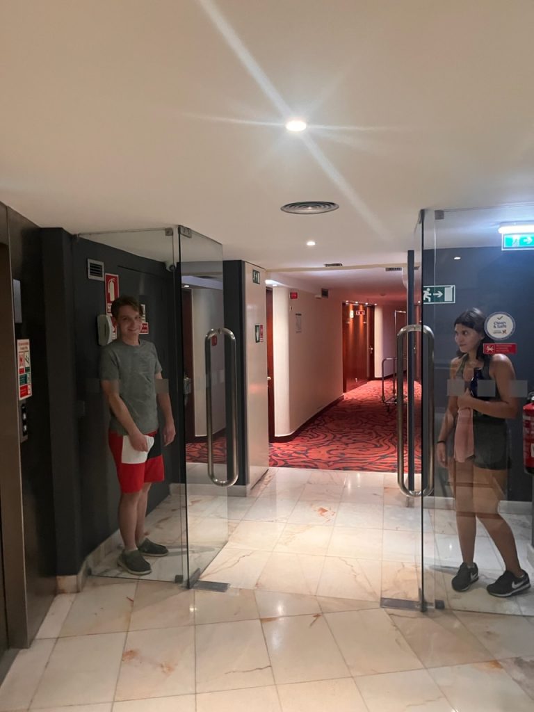 Tilman und ich haben uns heute mit Bruna getroffen und waren zusammen Kuchen essen. Abends wollten wir alle zusammen in Brunas Gym gehen aber das ging nicht. Deswegen haben wir uns im Mission Impossible Style in das Gym in Tilmans Hotel geschlichen.