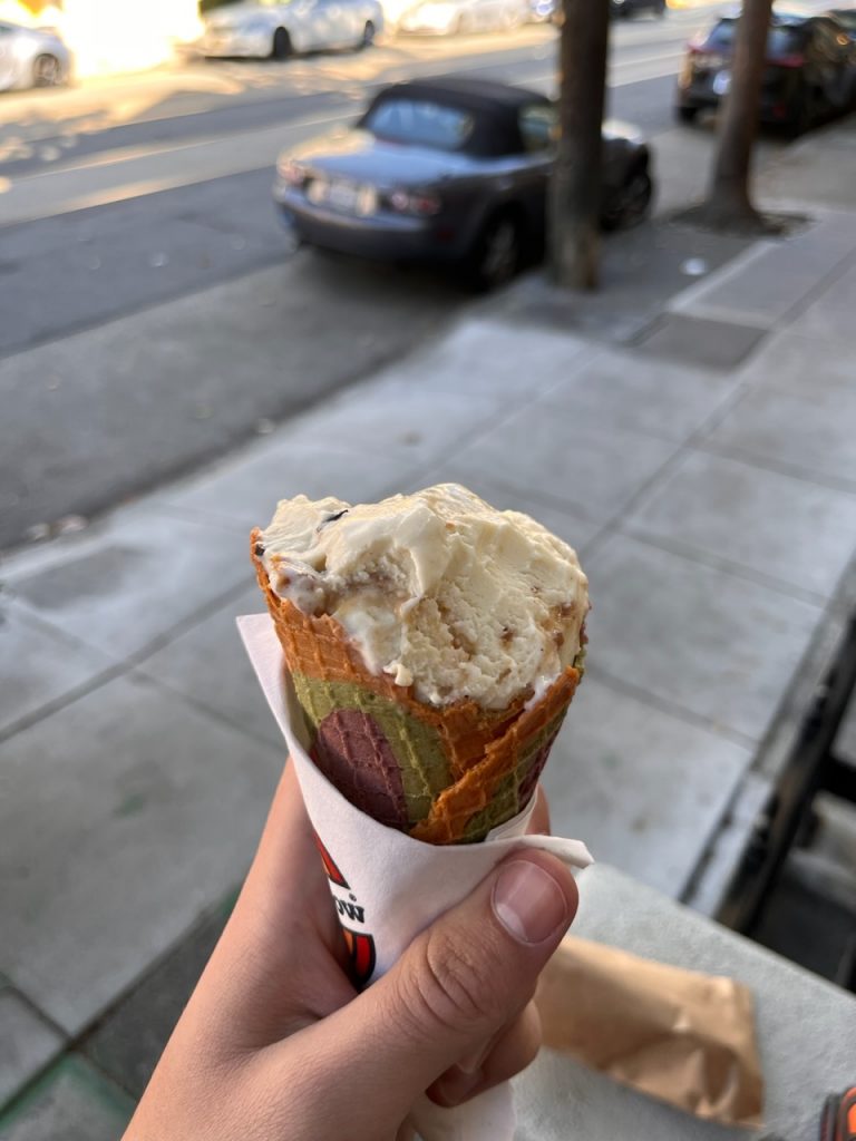 Bruce und ich haben als ich in San Francisco angekommen bin als erstes das Tor repariert. Ich glaube wir sind drei mal zum kleinen Baumarkt gelaufen. Auf einem der Rückwege haben wir Eis gekauft :).