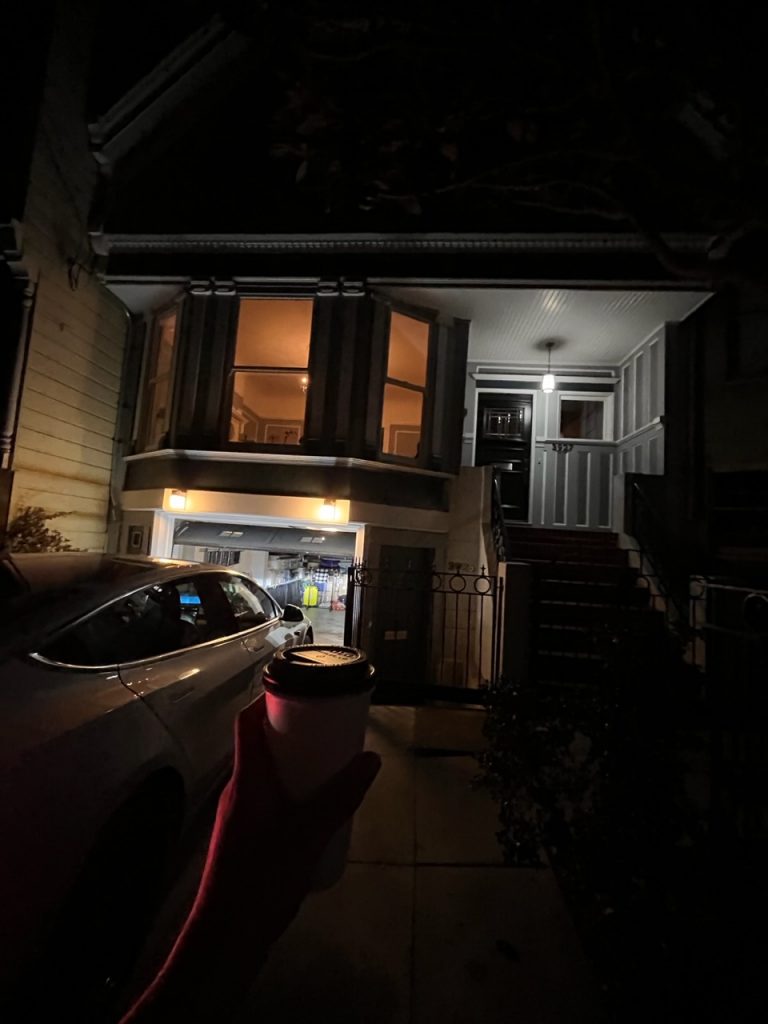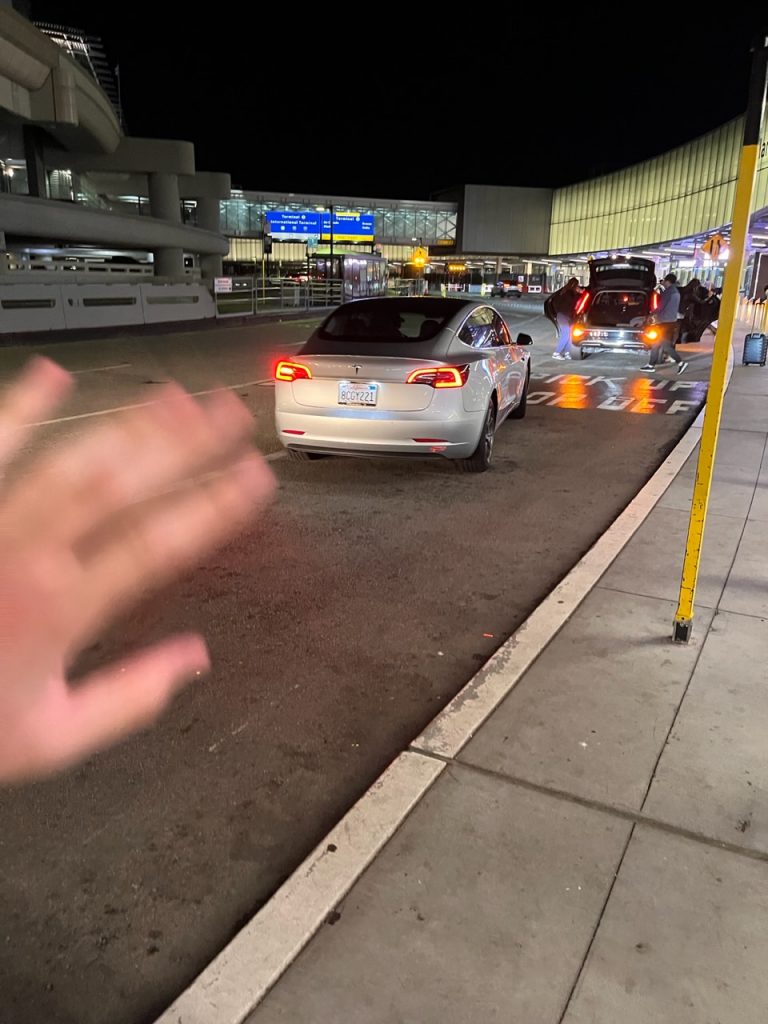 Bruce hat mich mit dem Tesla morgens um 4:30 Uhr zum Flughafen gebracht.